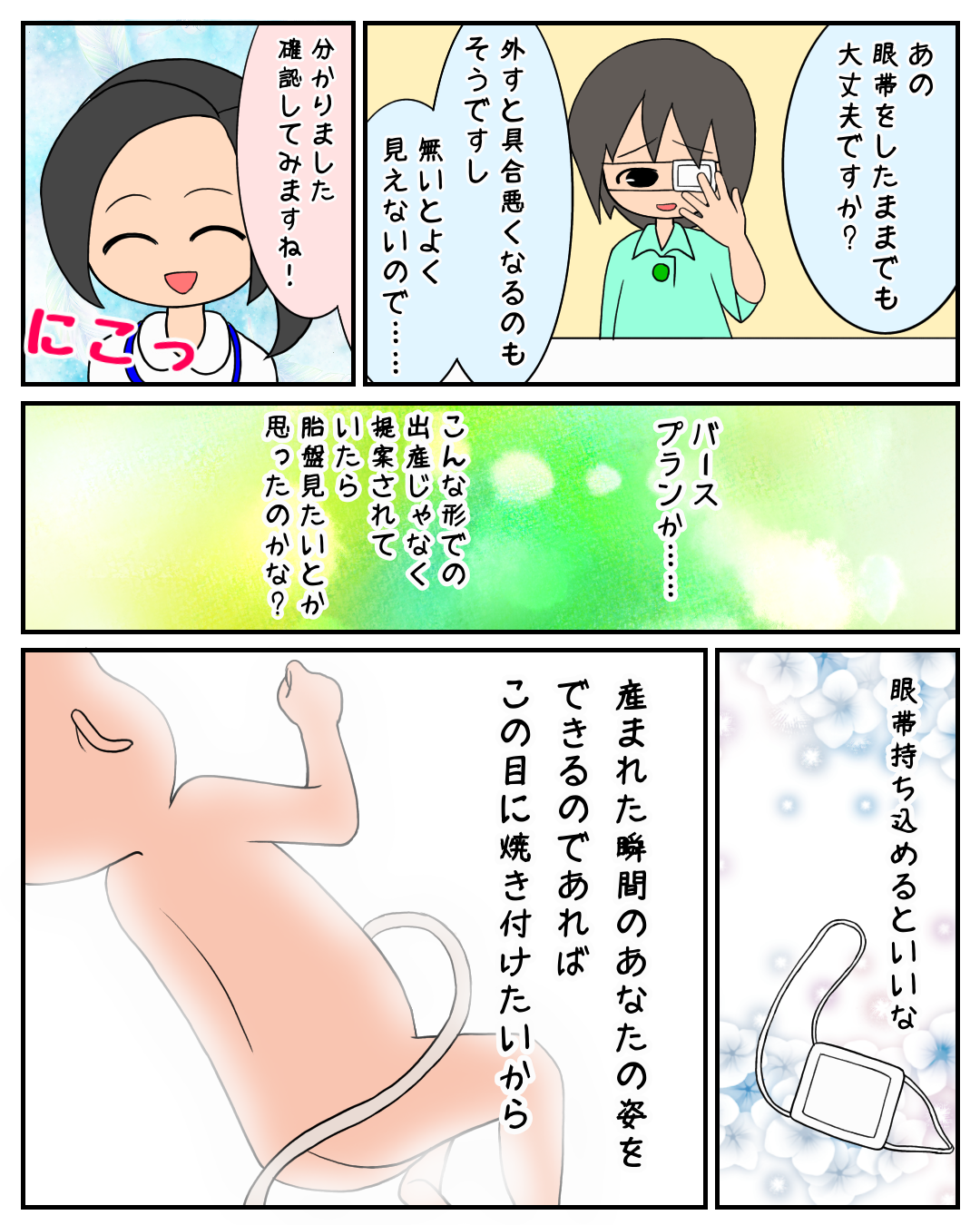 ある意味、眼帯や、人によっては眼鏡を持ち込みたいとかっていうのもバースプランなのでしょうね!