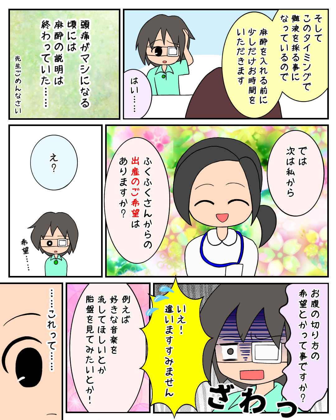 とにかくこの説明の時の具合が悪く、お二人の顔と名前と、麻酔の説明が全く頭に入らなかった記憶が……。